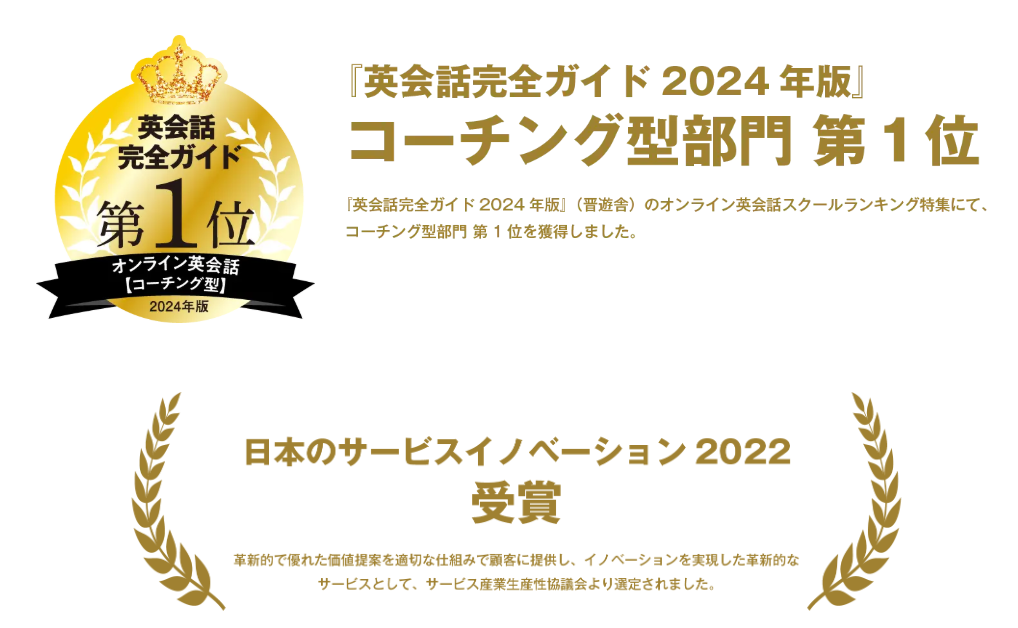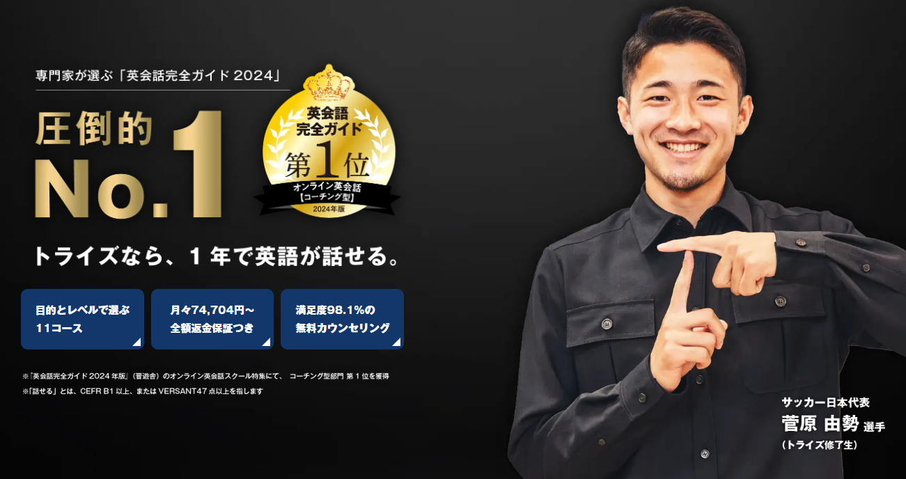 実際に、トライズは、「英会話完全ガイド 2024」オンライン英会話 コーチング型で第1位を受賞。